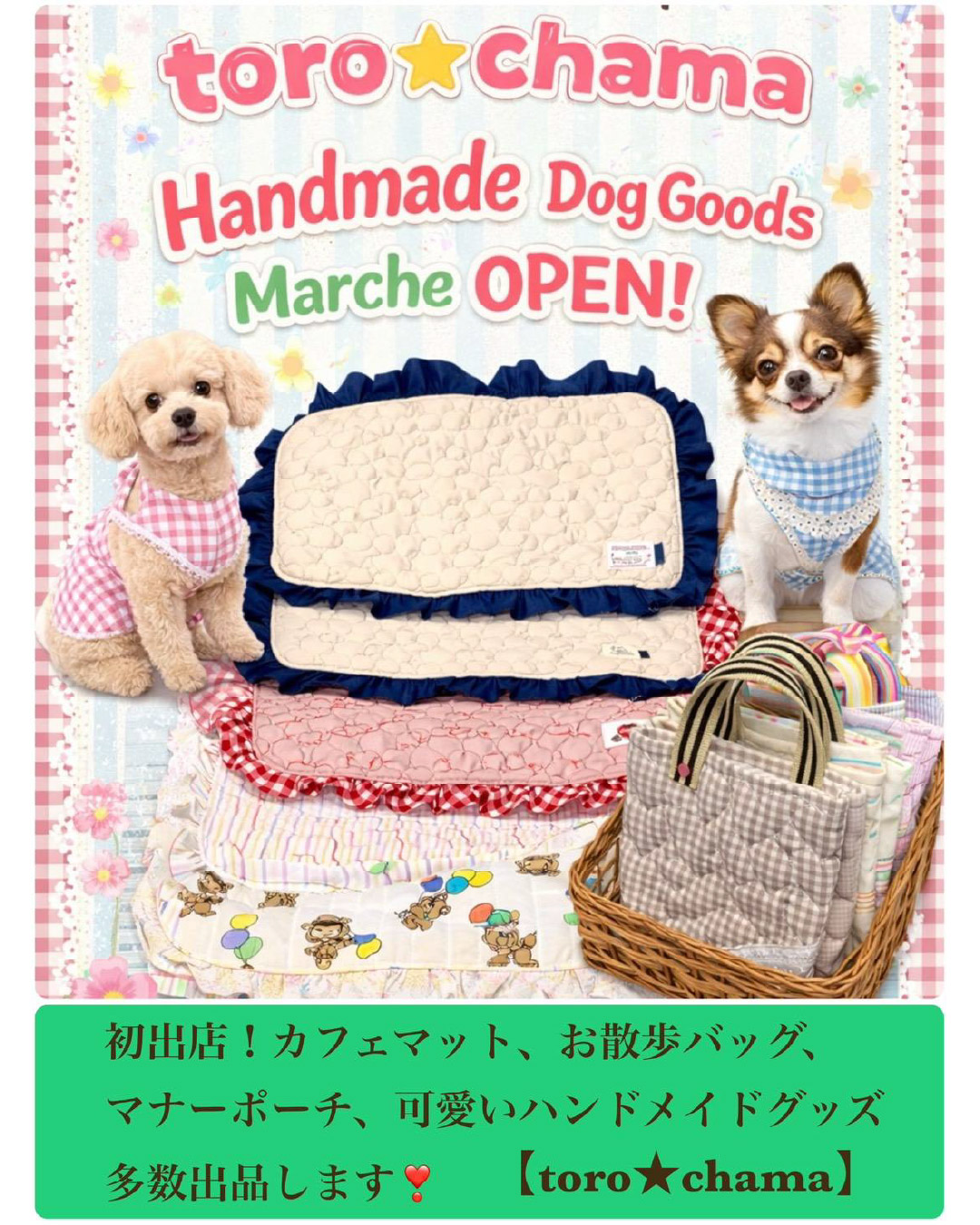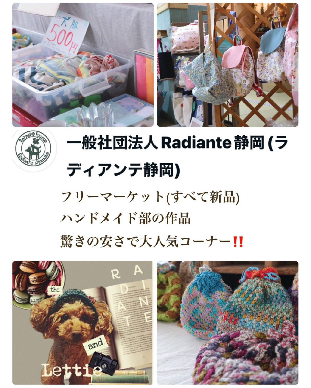 フリーマーケットやハンドメイド雑貨、犬猫おやつ販売、マッサージなど、