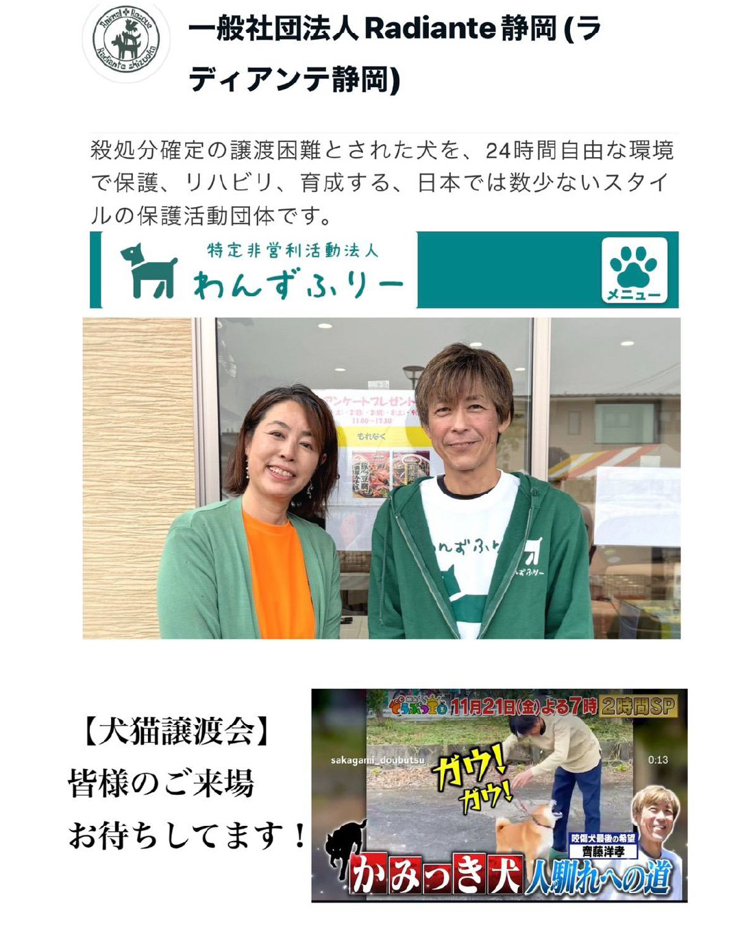 保護犬・保護猫との出会いの場としての譲渡会はもちろん、